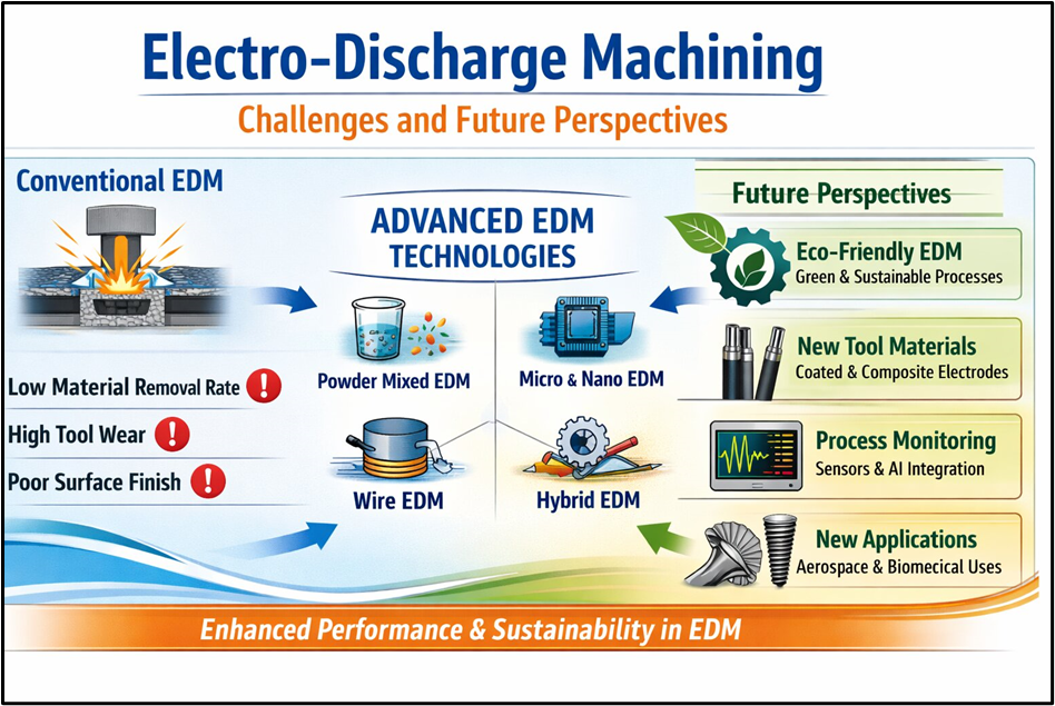 Electrical discharge machining (EDM) remains indispensable for high-precision machining of advanced and hard-to-machine materials; however, its broader industrial adoption is constrained by high energy consumption, unstable discharge behavior, dielectric degradation, and limited integration of sustainable and intelligent manufacturing strategies. Although existing reviews address micro-EDM and environmentally benign EDM individually, a consolidated and critical synthesis linking discharge physics, sustainability bottlenecks, and intelligent process control has remained limited. This review systematically analyzes highly cited and recent studies (2020–2024) indexed in Scopus and Web of Science, focusing on micro-EDM, green dielectric systems, hybrid-assisted EDM, and intelligent EDM technologies. The synthesized literature identifies key bottlenecks, including deterioration of the inter-electrode environment, inefficient debris evacuation, dielectric decomposition, and the absence of standardized sustainability performance metrics. The analysis reveals a clear convergence toward hybrid-assisted, sustainability-driven EDM strategies, in which coupled plasma–thermal–chemical interactions govern material removal and surface integrity rather than purely thermal effects. Comparative findings indicate that ultrasonic assistance is most effective for micro-scale and brittle materials, magnetic field assistance enhances plasma stability in conductive metallic systems, and biodegradable or water-based dielectrics significantly reduce environmental impact while maintaining acceptable machining performance. Furthermore, intelligent EDM approaches integrating sensor-based monitoring, AI-assisted optimization, and digital-twin frameworks show strong potential for adaptive control, although industrial deployment remains limited by sensing robustness and system integration challenges. Overall, this review proposes a structured roadmap for transitioning EDM toward intelligent, energy-efficient, and sustainable industrial manufacturing.