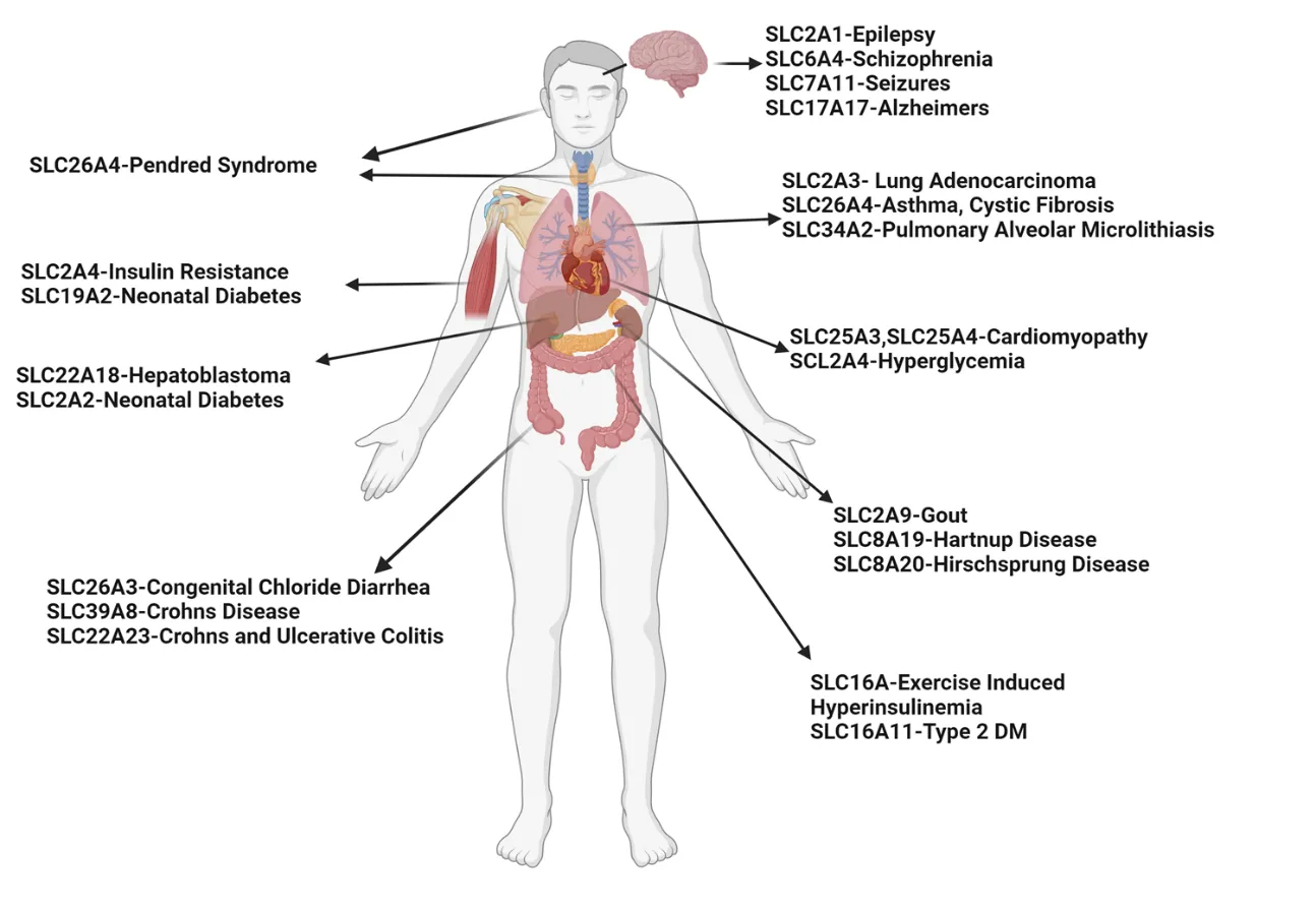 Asthma is a prevalent respiratory condition with multifaceted pathomechanisms, presenting challenges for therapeutic development. The SLC (Solute Carrier) gene family, encompassing diverse membrane transport proteins, plays pivotal roles in various human diseases by facilitating solute movement across biological membranes. These solutes include ions, sugars, amino acids, neurotransmitters, and drugs. Mutations in these ion channels have been associated with numerous disorders, underscoring the significance of SLC gene families in physiological processes. Among these, the SLC26A4 gene encodes pendrin, an anion exchange protein involved in transmembrane transport of chloride, iodide, and bicarbonate. Mutations in SLC26A4 are associated with Pendred syndrome. Elevated SLC26A4 expression has been linked to airway inflammation, hyperreactivity, and mucus production in asthma. Here, we review novel insights from SLC gene family members into the mechanisms of substrate transport and disease associations, with specific emphasis on SLC26A4. We explore triggers inducing SLC26A4 expression and its contributions to the pathogenesis of pulmonary diseases, particularly asthma. We summarize the inhibitors of SLC26A4 that have shown promise in the treatment of different phenotypes of diseases. While SLC26A4 inhibitors present potential treatments for asthma, further research is imperative to delineate their precise role in asthma pathogenesis and develop efficacious therapeutic strategies targeting this protein.utf-8