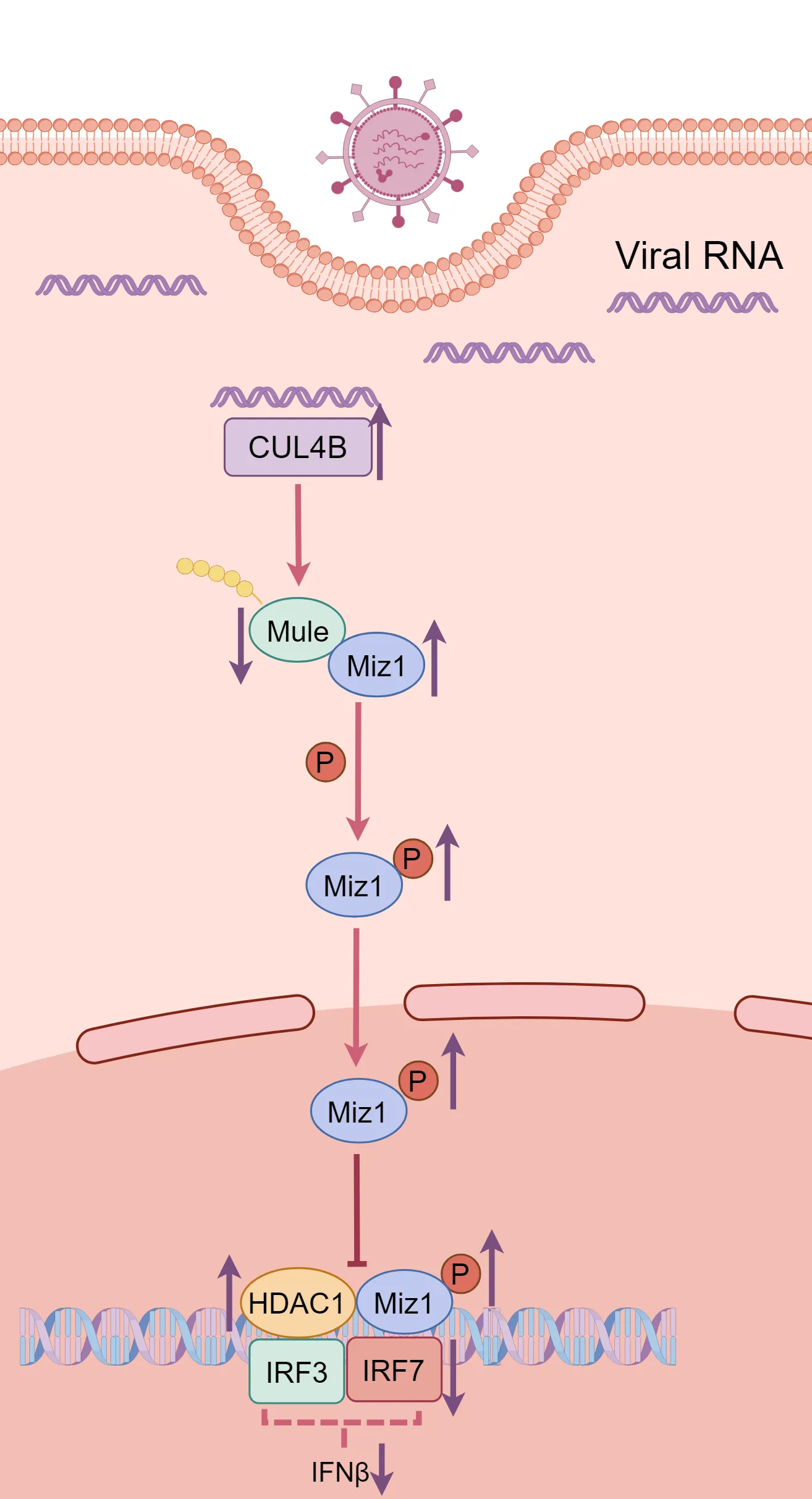 The ubiquitin system has been shown to play an important role in regulation of immune responses during viral infection. In a recent article published in Science Signaling, Wu and colleagues revealed that transcriptional factor Miz1 plays a pro-viral role in influenza A virus (IAV) infection by suppressing type I interferons (IFNs) production through recruiting HDAC1 to ifnb1 promoter. They show that a series of E3 ligases combinatorially regulates Miz1 ubiquitination and degradation and modulates IFNs production and viral replication.