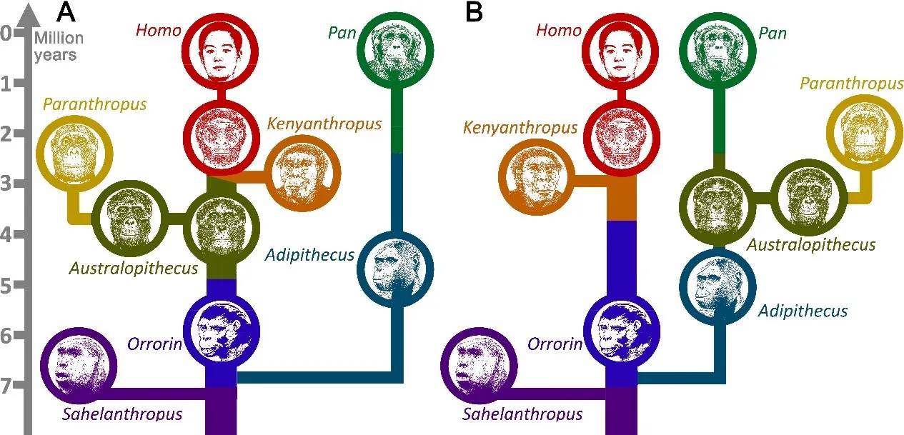 The dominant paradigm regarding human evolution since the split with Pan considers australopithecines as hominins, i.e., the closest relatives and/or direct ancestors of Homo. Historically, this paradigm started from the assumption that the Homo/Pan/Gorilla last common ancestor was a knuckle-walking ape that evolved into the fully upright (orthograde), obligate bipedal genus Homo, whereas Pan and Gorilla remained knuckle-walkers. Obligate terrestrial upright bipedalism, unique for our species, is an odd locomotor behaviour for a primate. Therefore, it had become generally accepted that a cooler and drier African climate had caused deforestation, which had forced our ancestors to develop upright bipedalism as an adaptation to living on open grassland savannah. This view, already held by Lamarck and Darwin, appeared most parsimonious in the almost complete absence of fossils. The discovery in the 20th century of australopithecine fossils, bipedal apes with small brains, in open country in southern and eastern Africa corroborated the savannah paradigm. Therefore, australopithecines are considered hominins. However, it is now recognized that most australopithecines instead lived in a mosaic of forests, grasslands and wetlands, and better knowledge of their fossils clearly indicates that they possessed several climbing adaptations. Moreover, none of the extinct ape species older than Australopithecus and Paranthropus for which postcranial remains have been described (e.g., Morotopithecus, Sahelanthropus, Orrorin, Ardipithecus) were knuckle-walking. On the other hand, upright posture/gait is already present to different degrees even in Miocene apes. Moreover, the notion that hominoid orthogrady is a primitive characteristic is corroborated by the growing consensus that knuckle-walking is not a primitive trait but has evolved in parallel, independently in both Pan and Gorilla. Consequently, it is possible that australopithecines are not transitional between a semi-erect ancestor and upright bipedal humans, but to the contrary, are intermediate between a more upright ancestor and extant semi-erect African apes. In summary, hypotheses that attempt to explain how a semi-erect Homo/Pan last common ancestor transitioned into the bipedal australopithecines as an adaptation to life on the savannah appear to be ill-conceived and moreover seem to have been superfluous from the very start. We review the numerous similarities between australopithecines and extant African apes, suggesting that they are possibly not hominins and therefore not our direct ancestors. We suggest that we may have been barking up the wrong ancestral tree, for almost a century.