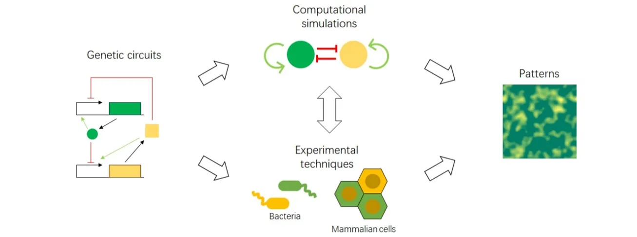 Pattern formation is a fundamental process in biological development, enabling the transformation of initially uniform or random states into spatially ordered structures. A comprehensive understanding of the formation and function of these patterns is crucial for unraveling the underlying principles of biological design and engineering. In recent years, synthetic biology has emerged as a powerful discipline for investigating and manipulating pattern formation in biological systems, involving the design and construction of novel biological components, circuits, and networks with specific functionalities. The integration of computational simulations (in silico) and experimental techniques (wet lab) in synthetic biology has significantly advanced our knowledge of pattern formation and its implications in biological design and engineering. This review provides an overview of the computational simulations employed in studying pattern formation and introduces the representative and cutting-edge experimental methods utilized in wet labs.
