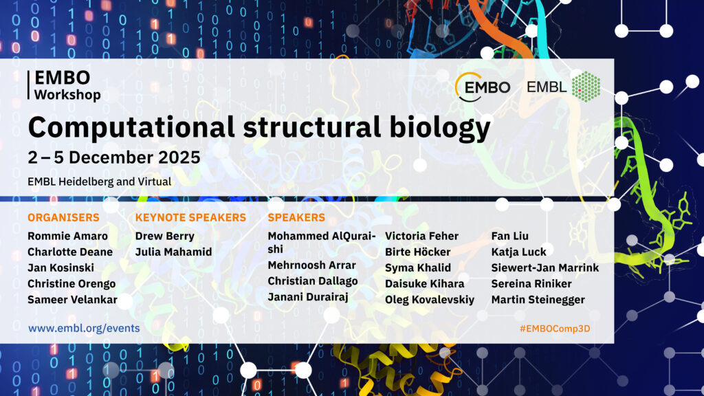 This second edition of the EMBO “Computational Structural Biology” workshop builds on the success of the 2023 meeting. It aims to present and discuss advancements in computational studies of biomolecular structures, functions, and interactions, encompassing AI-driven innovations and classical methods while exploring future directions in the field.
