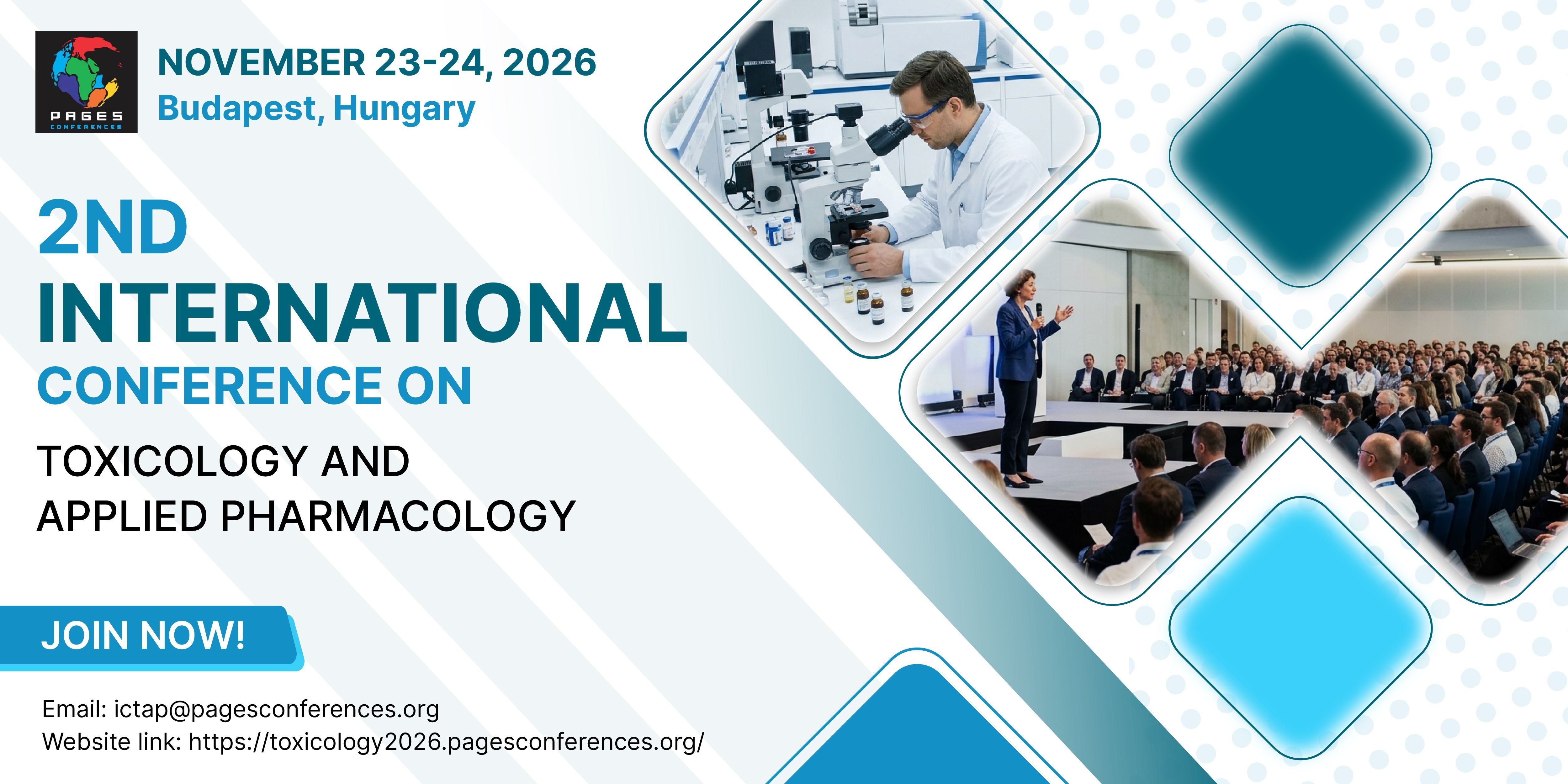 We are delighted to invite researchers, academicians, industry professionals, and students worldwide to the 2nd International Conference on Toxicology and Applied Pharmacology, scheduled for November 23–24, 2026, in Budapest, Hungary.
