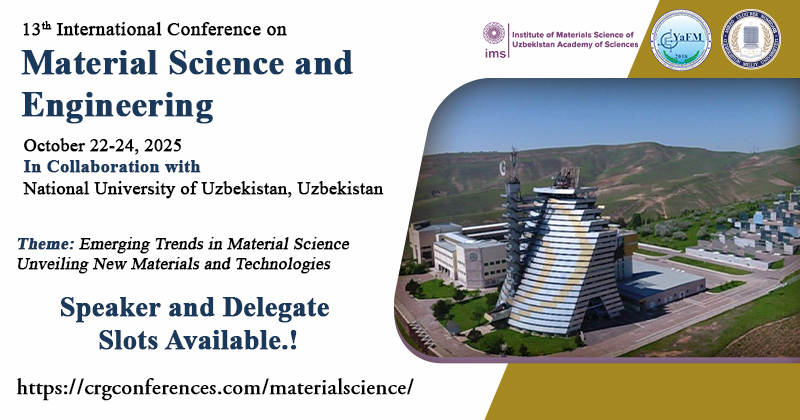 Join us for the 13th International Conference on Materials Science and Engineering, scheduled to be held from October 22 - 24, 2025, at the prestigious Research Institute of Physics, Semiconductors and Microelectronics, National University of Uzbekistan, in Tashkent, Uzbekistan.